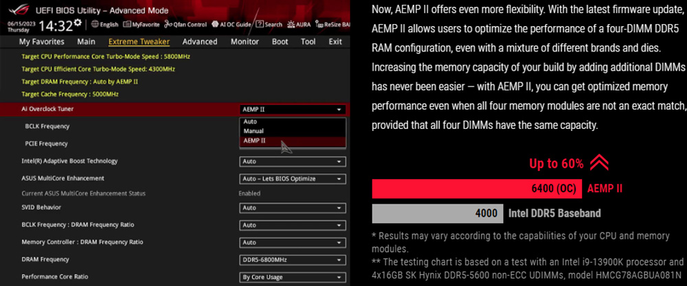 Giờ đây, AEMP II còn mang đến sự linh hoạt hơn nữa. Với bản cập nhật chương trình cơ sở mới nhất, AEMP II cho phép người dùng tối ưu hóa hiệu suất của cấu hình RAM 4 DIMM DDR5, ngay cả với sự kết hợp của nhiều nhãn hiệu và khuôn khác nhau.
