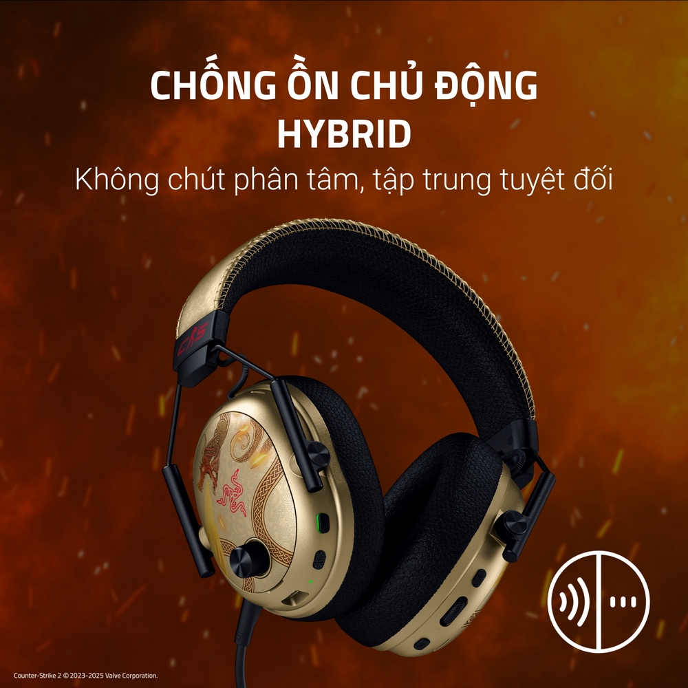 Công nghệ Hybrid Active Noise Cancellation (ANC) với 4 micro lọc ồn chủ động cho khả năng triệt tiêu tiếng ồn hiệu quả ở dải tần thấp, từ tiếng quạt, xe cộ đến âm thanh môi trường xung quanh. Điều này giúp bạn tập trung 100% vào âm thanh trong game mà không bị xao nhãng bởi tạp âm, đặc biệt khi chơi game trong môi trường đông người như quán net, phòng stream hoặc phòng khách.