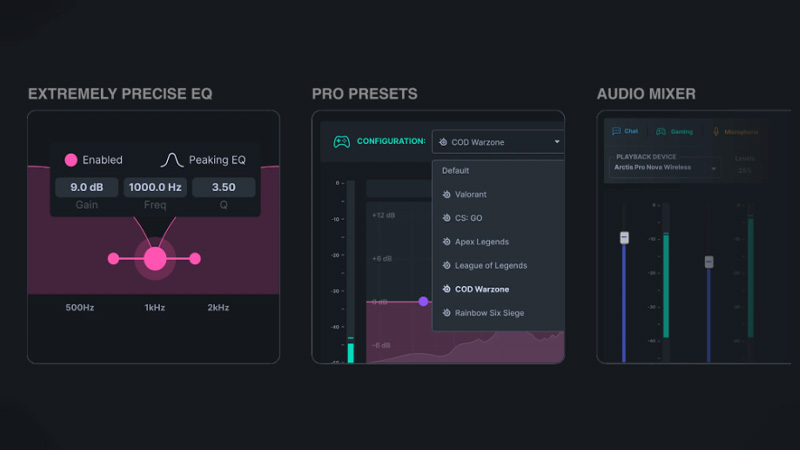 Khi sử dụng cùng phần mềm SteelSeries Sonar trên PC, bạn có thể kích hoạt X-Ray Hearing — công nghệ phân tích âm thanh giúp nhấn mạnh tiếng bước chân, reload, đặt bom,… trước cả khi nhìn thấy đối thủ. Đây là lợi thế lớn cho game thủ FPS như CS2, Valorant hay Apex Legends.