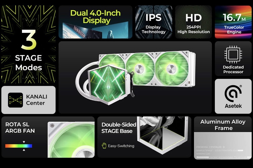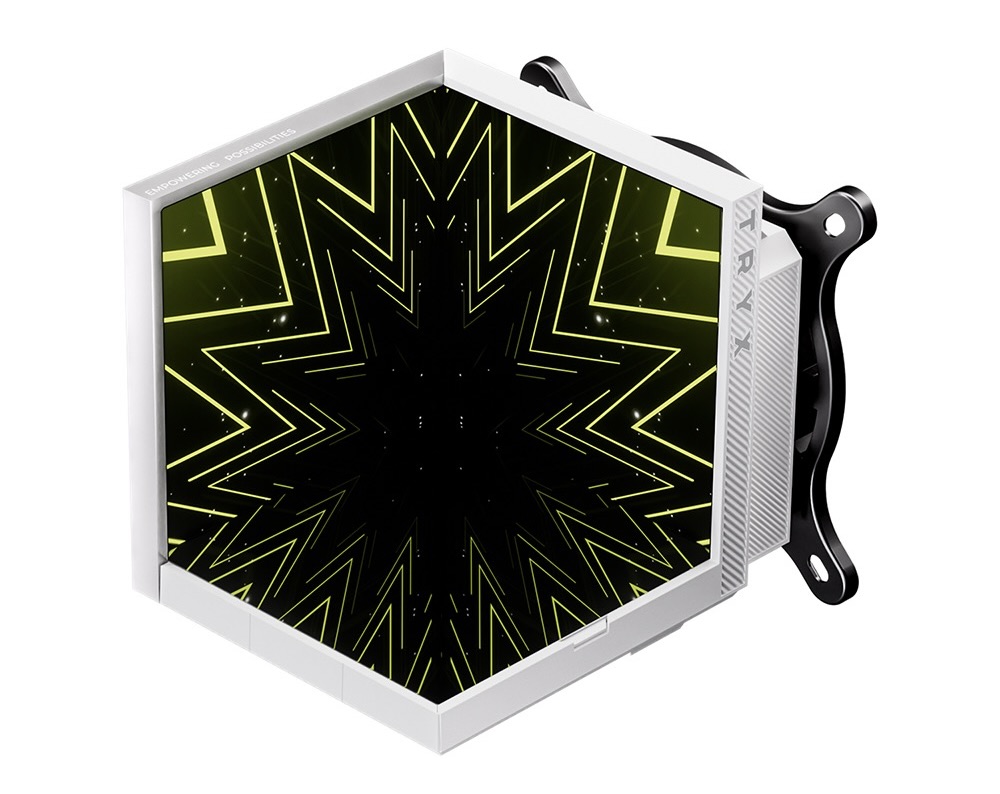 Điểm nhấn ấn tượng nhất của TRYX STAGE 360 chính là màn hình kép 4.0 inch IPS trên block CPU. Người dùng có thể hiển thị nhiệt độ, xung nhịp, thông tin phần cứng hoặc tùy chỉnh hình ảnh, animation theo sở thích.
