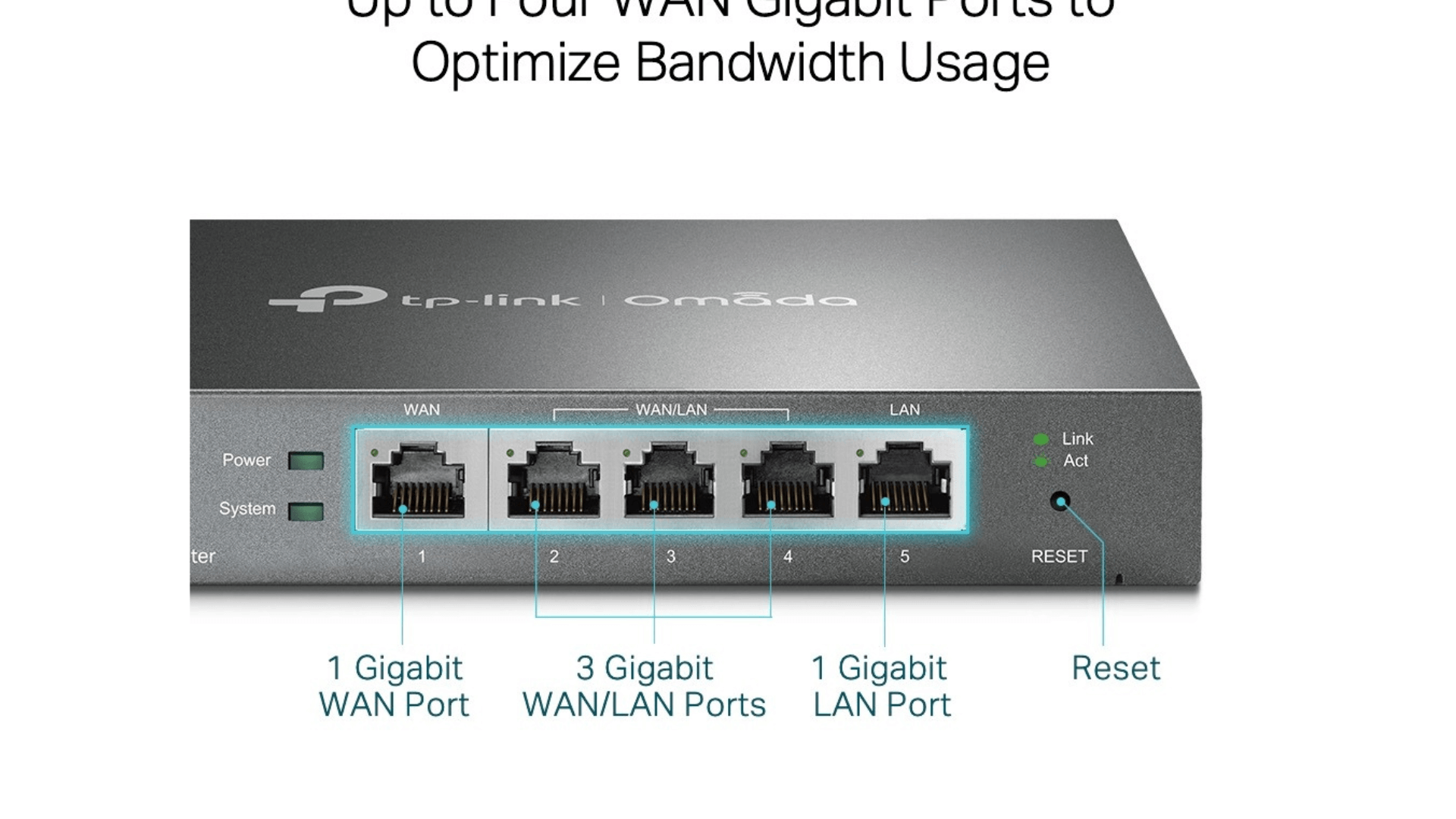 | Cổng kết nối | 1 Cổng WAN Gigabit cố định • 1 Cổng LAN Gigabit cố định • 3 cổng WAN / LAN Gigabit có thể thay đổi |
