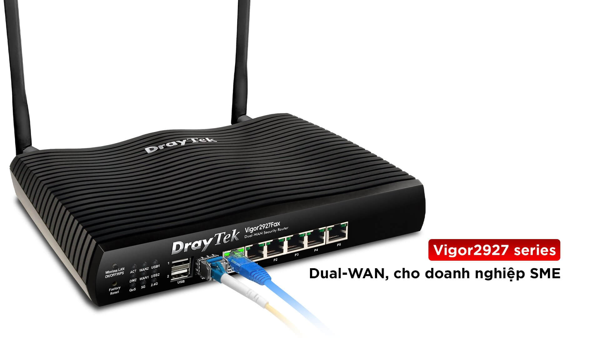 Tổng thể, DrayTek Vigor V2927FAX là một giải pháp router quang VPN toàn diện, hội tụ hiệu năng cao – bảo mật mạnh – WiFi Marketing thông minh – quản trị tập trung chuyên sâu, xứng đáng là trung tâm mạng cho các hệ thống doanh nghiệp hiện đại.