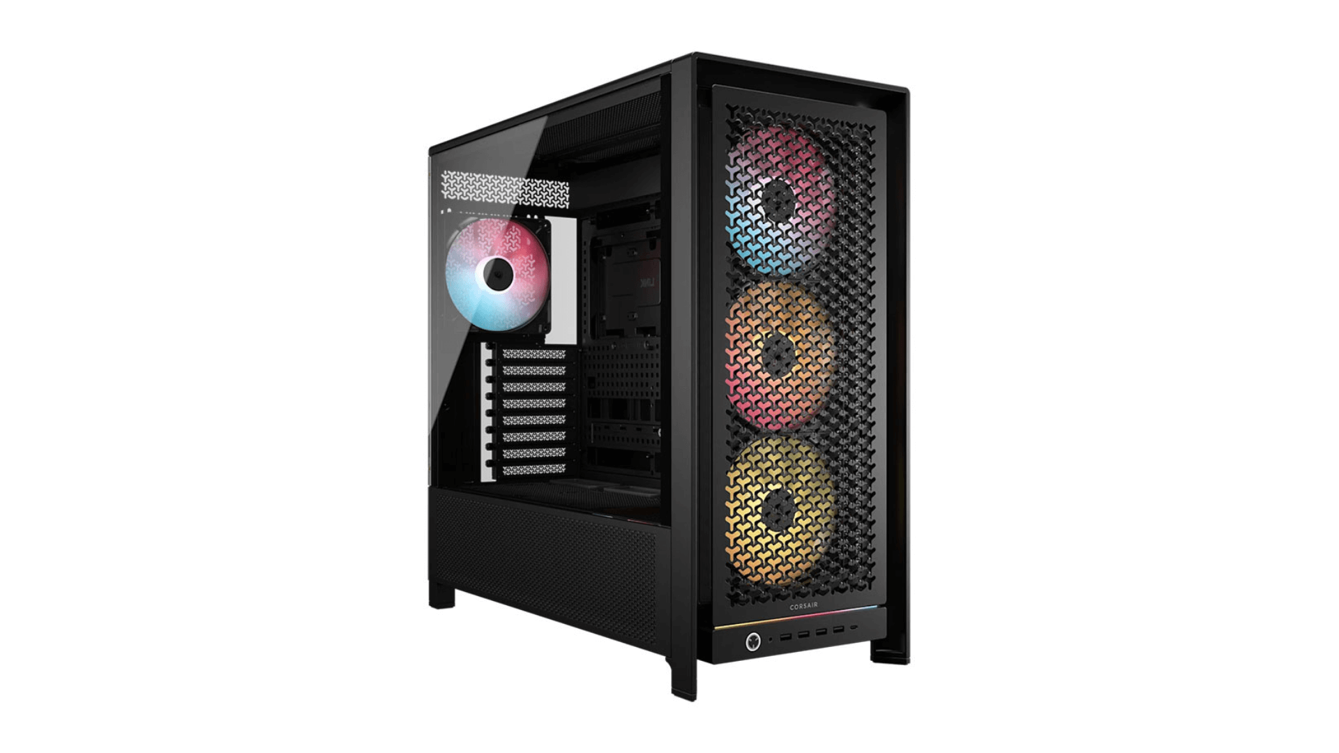 Corsair trang bị sẵn cho FRAME 5000D các quạt RS ARGB Series, mang đến hiệu ứng ánh sáng sống động và đồng bộ dễ dàng với hệ sinh thái RGB hiện đại. Cổng kết nối 5V ARGB được tích hợp sẵn, giúp người dùng dễ dàng điều khiển ánh sáng và tạo điểm nhấn thẩm mỹ cho toàn bộ hệ thống, phù hợp với những bộ PC showcase hoặc gaming build cao cấp.