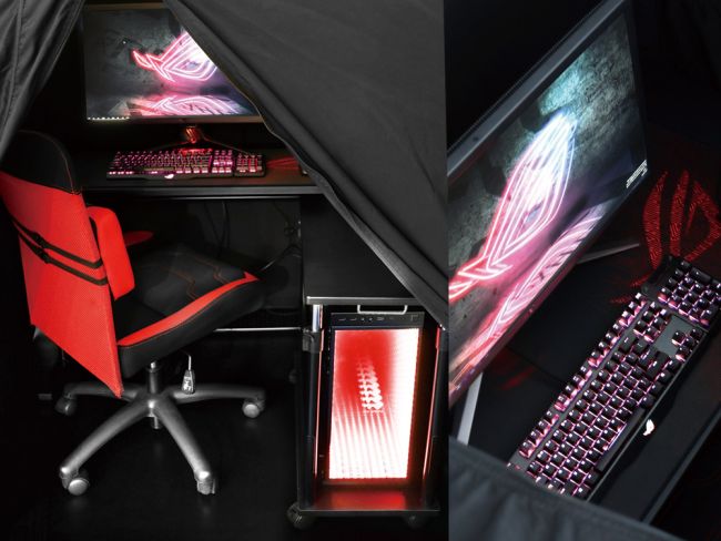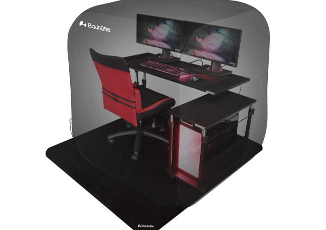 Nếu bạn chưa sẵn sàng để mua một chiếc giường gaming, bạn có thể thử chiếc lều cắm trại gaming (gaming camp) cũng đến từ Bauhutte. Với một chiếc lều kín đáo bao quanh chiếc bàn gaming của bạn Nó như là một tấm trùm cho bạn phủ lên góc gaming và kéo khóa lại, tạo không gian riêng tư và cho phép tập trung hơn vào công việc.